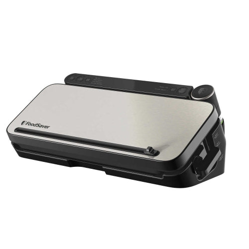 Ce système de conservation des aliments polyvalent FoodSaver combine la puissance d’un scellant thermique avec la commodité d’un scellant à vide portatif rétractable, dans une seule unité. Utilisez la bande de joint thermique pour la conservation à long terme dans le congélateur, et le scellant portatif pour la conservation à court terme dans le réfrigérateur ou le garde-manger. Ce système de conservation des aliments garde les aliments frais jusqu’à 5 fois plus longtemps au congélateur par rapport aux méthodes d’entreposage ordinaires, et aide également à prévenir les brûlures de congélation. FoodSaver peut également aider les articles du réfrigérateur et du garde-manger à rester frais plus longtemps. Le design élégant et moderne de cet appareil est doté d’un fini en acier inoxydable qui a fière allure dans n’importe quelle cuisine. Ainsi, vous pouvez tirer le meilleur parti de votre système FoodSaver.