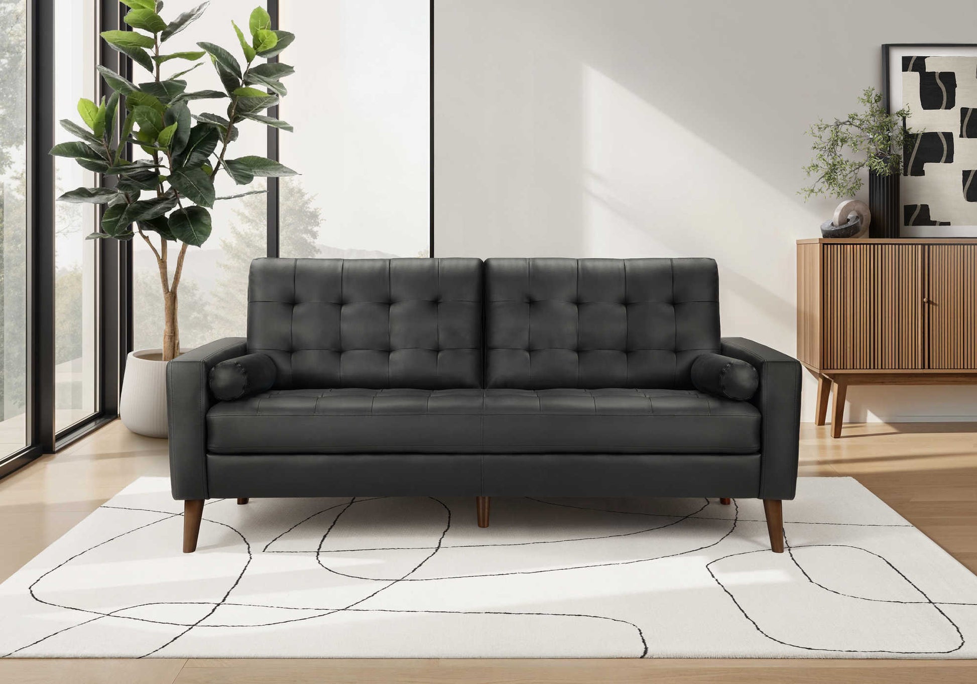 Sofa de 75" avec 2 coussins de Monarch - Simili cuir noir (CK5A95)